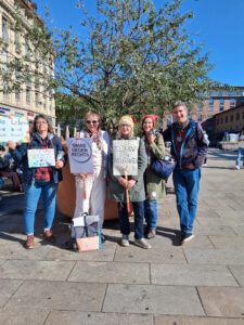 Zur Unterstützung der Thüringer OMAS fuhren einige Kasseler OMAS und ein OPA in die Thüringer Landeshauptstadt und wurden von den dortigen OMAS mit großer Freude begrüßt. Voller Energie und in Begleitung einer tolle Samba-Gruppe zogen wir durch Erfurt und waren den AfDlern zahlen- und lautstärkemäßig weit überlegen.